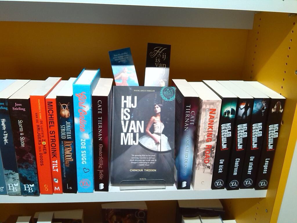 In Boekhandel Haasbeek staat Hij is van mij er heel mooi bij! Met dank aan medewerker Wally Klos voor de leuke foto.
