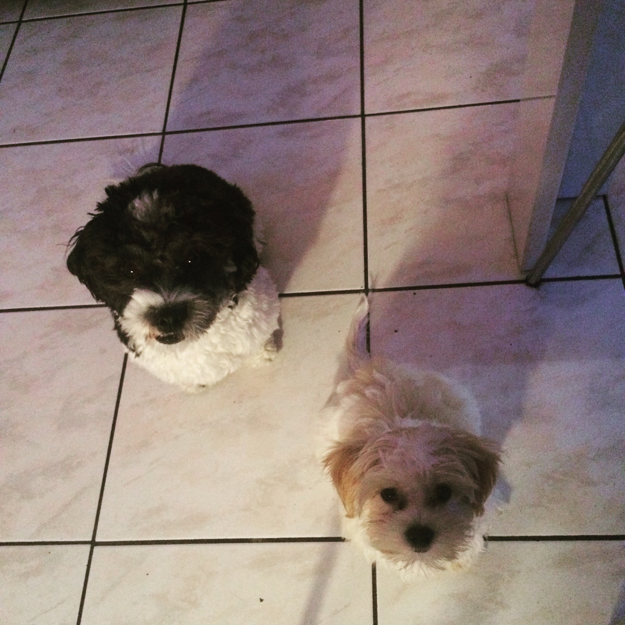 Soms geven de puppy’s het aan als ze vinden dat ik genoeg gewerkt heb en het tijd is om te spelen. Wie kan er nu nee zeggen tegen deze lieve koppies?