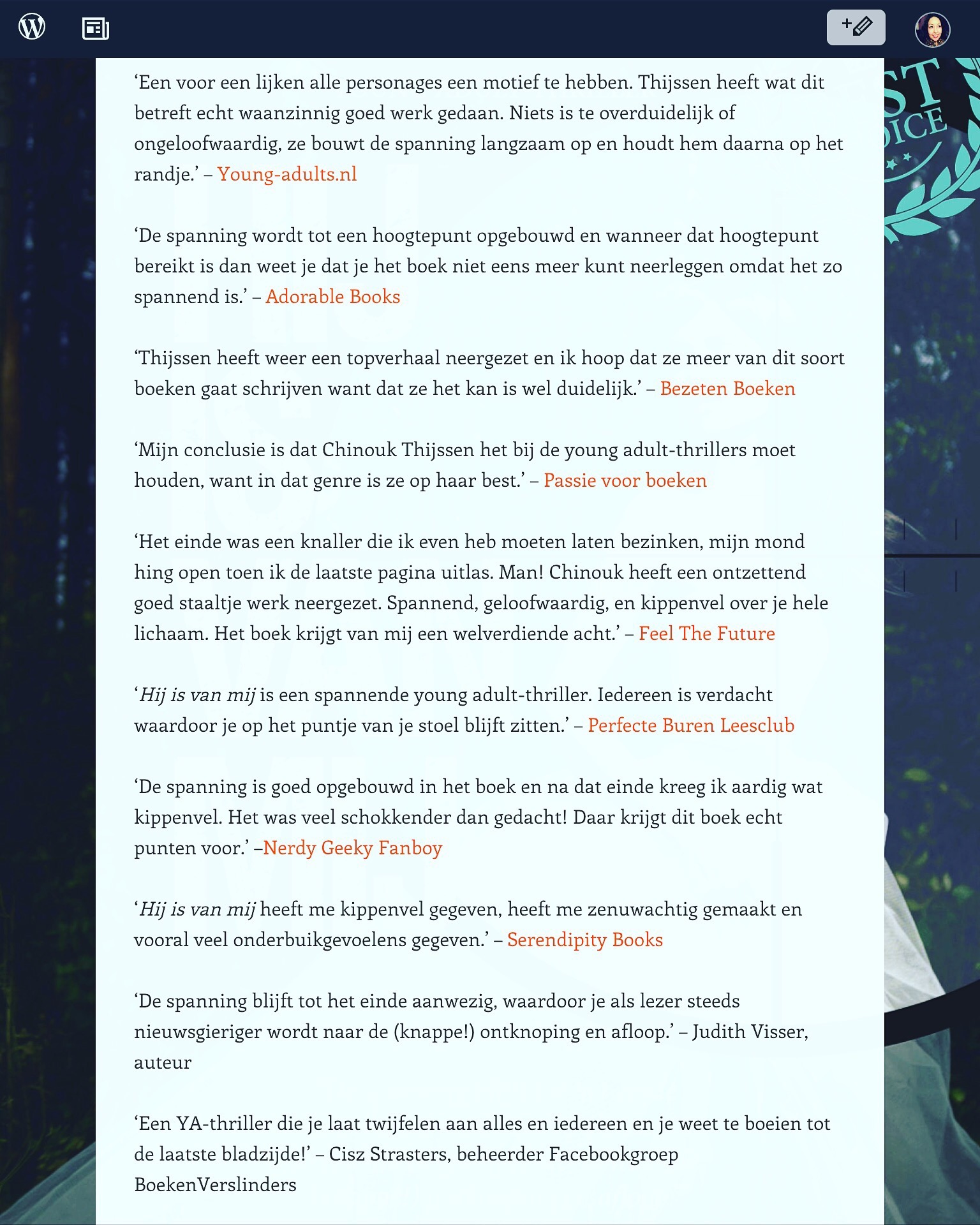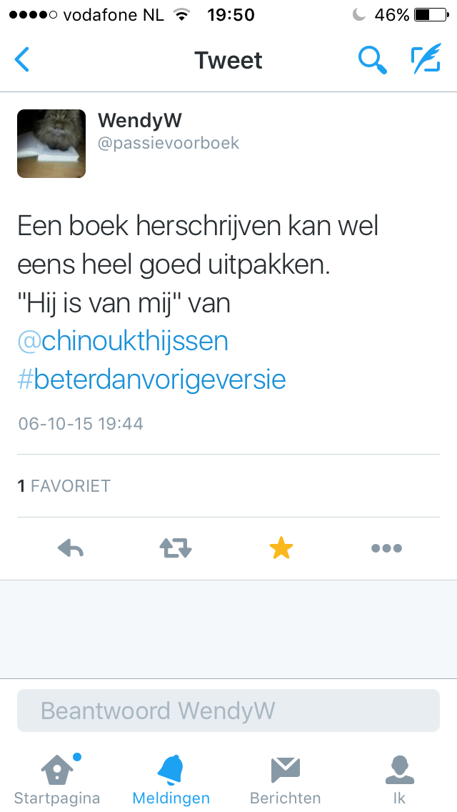 Ook vond ik het heel leuk dat mensen die de originele versie van Hij is van mij gelezen hebben de YA-editie lezen, en zelfs beter vinden!