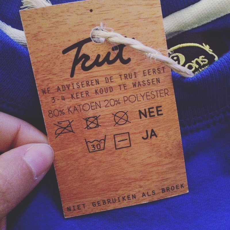Bij 9lemons.nl kocht ik de officiële Trut-trui. Ik ben er helemaal gek op. Ook de onderste zin op het kaartje vind ik geweldig: Niet gebruiken als broek.