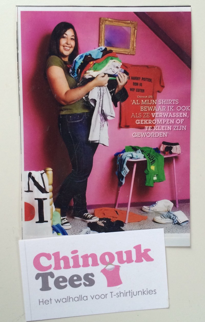 Throwback to my first little company. Chinouk Tees is ontstaan uit verveling en uit liefde voor T-shirts. Een paar jaar lang ontwierp ik zogeheten talking tees en deze foto heeft zelfs in de Yes gestaan. Dat resulteerde in 100 bestellingen op één dag! Uiteindelijk ben ik ermee gestopt omdat ik er geen tijd meer voor had en een nieuw bedrijf begon. Inmiddels zijn we al bijna zes jaar verder.