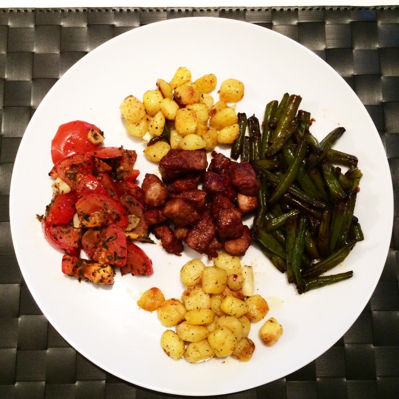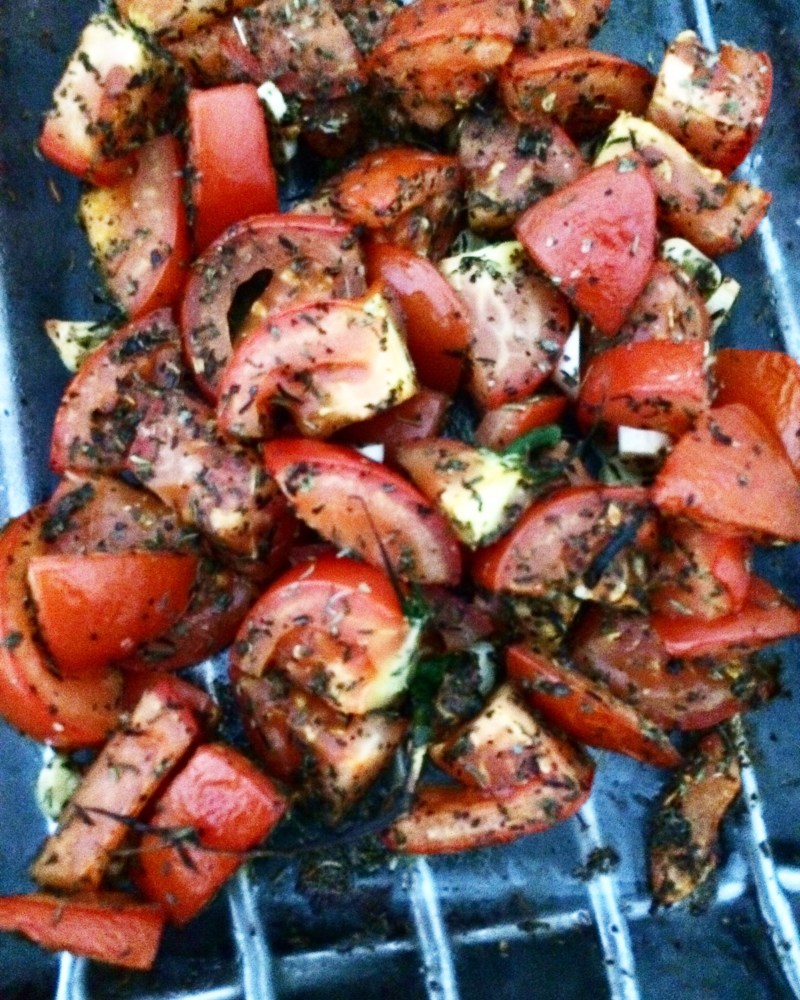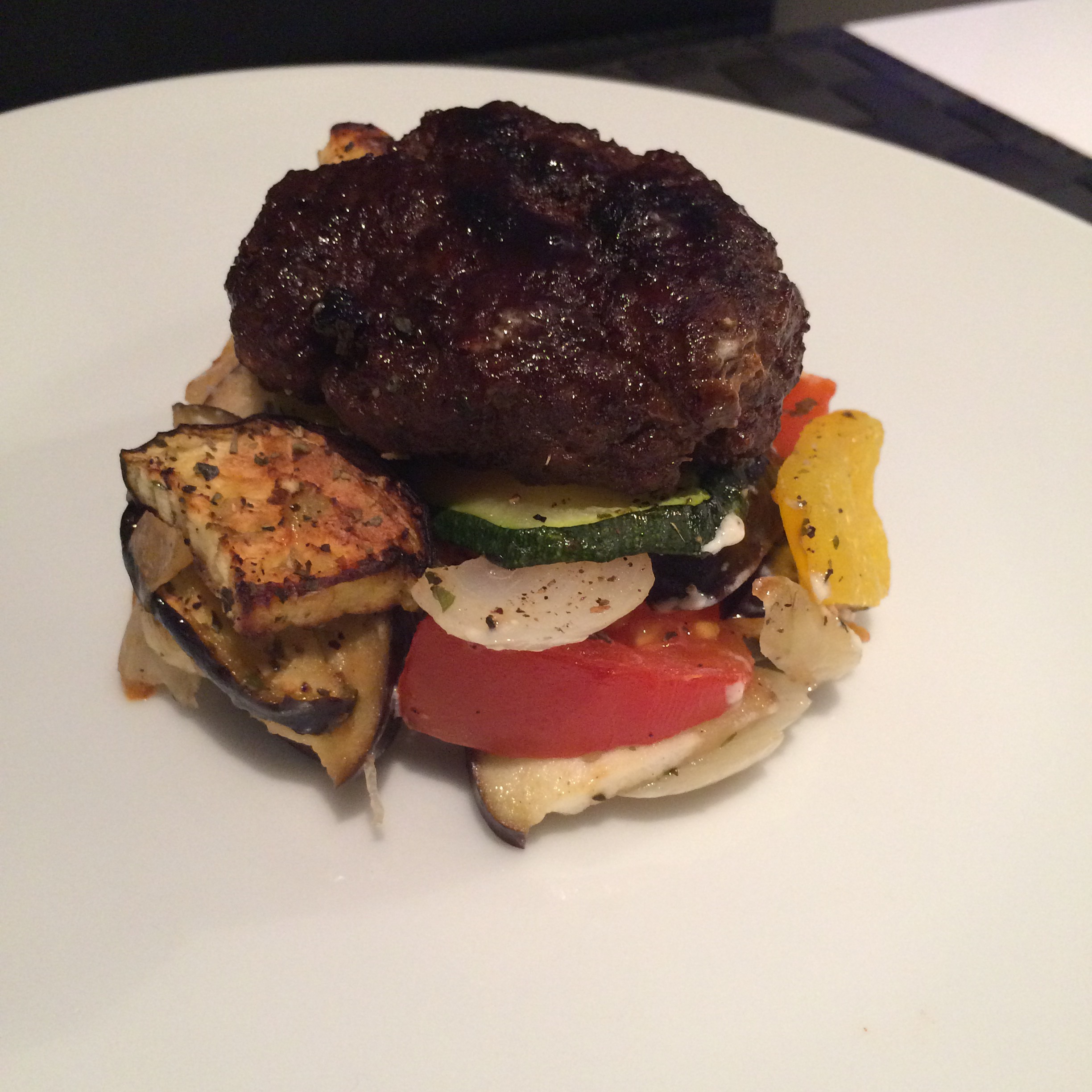Hamburger op een bedje van gegrilde groenten. Mmmm…