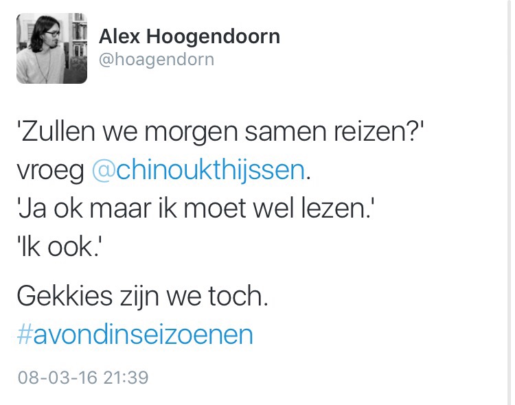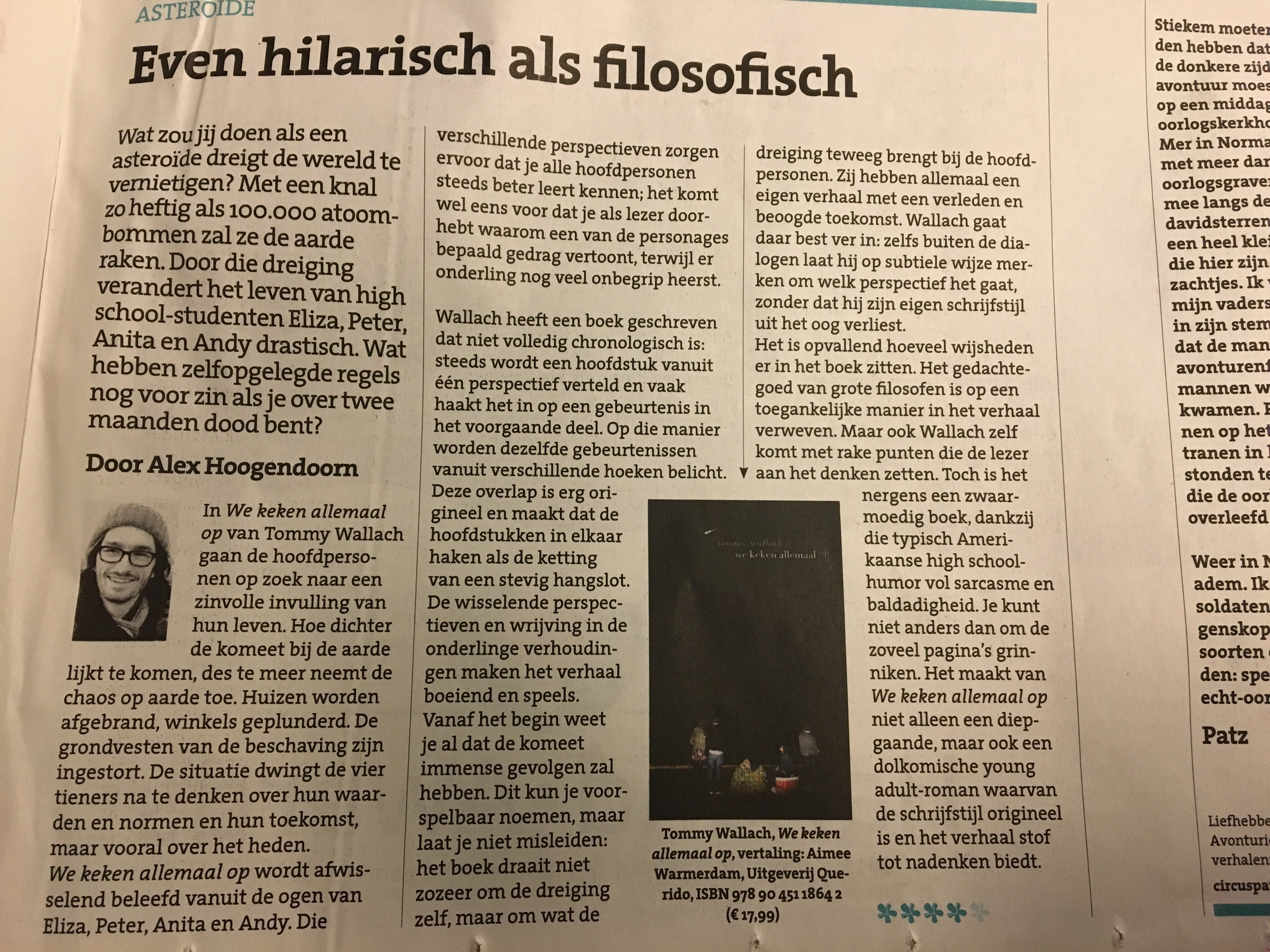 In de trein bewonderde ik de editie van de Boekenkrant waarin Alex’ eerste recensie is gepubliceerd. Echt supertof!