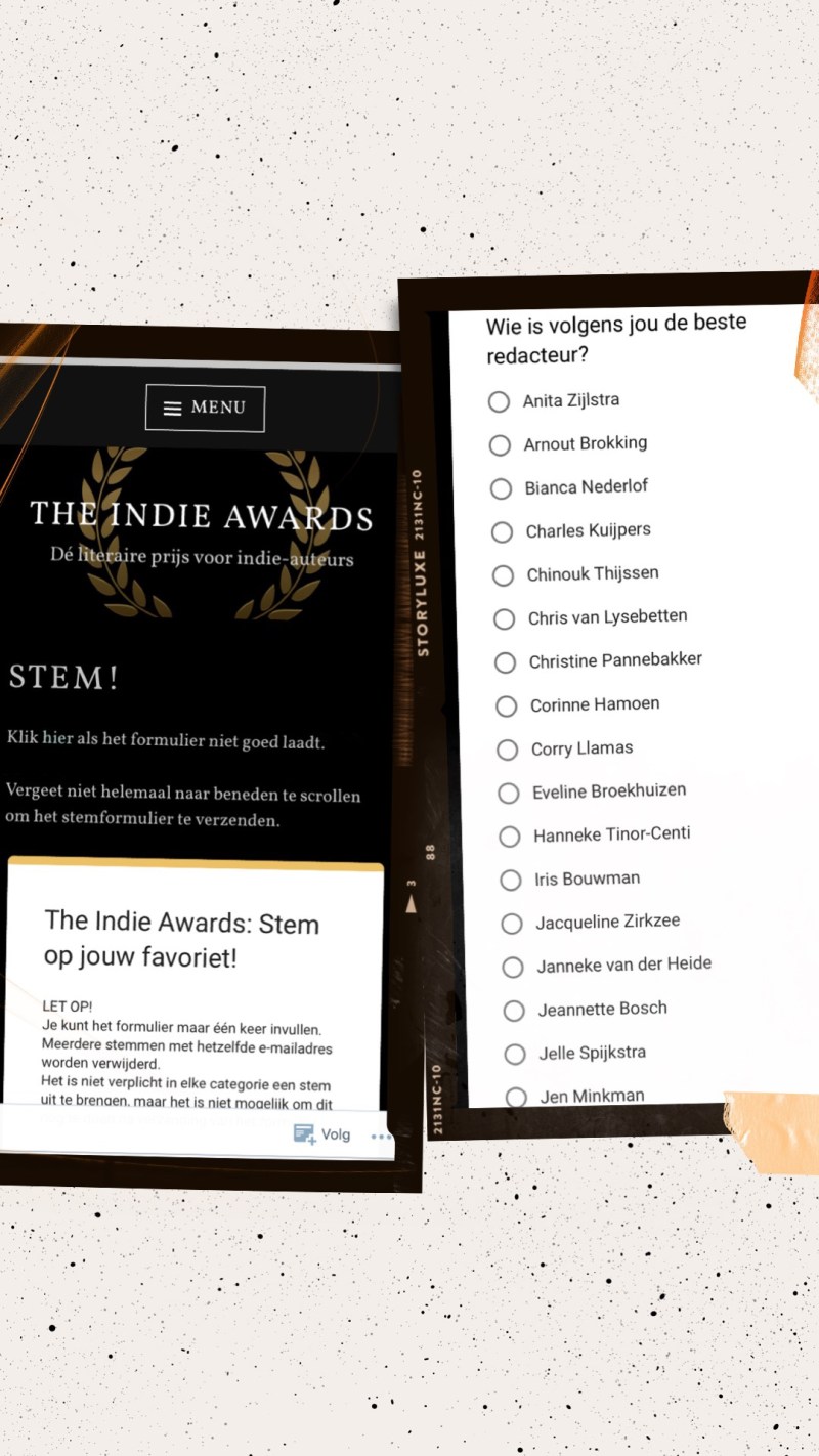 Vanaf nu kan er gestemd worden op alle categorieën van The Indie Awards! Onderaan vind je de genomineerden voor beste redacteur. Ik heb de eer om op de longlist te staan, maar natuurlijk zou ik verder willen komen. Help jij me naar de shortlist?