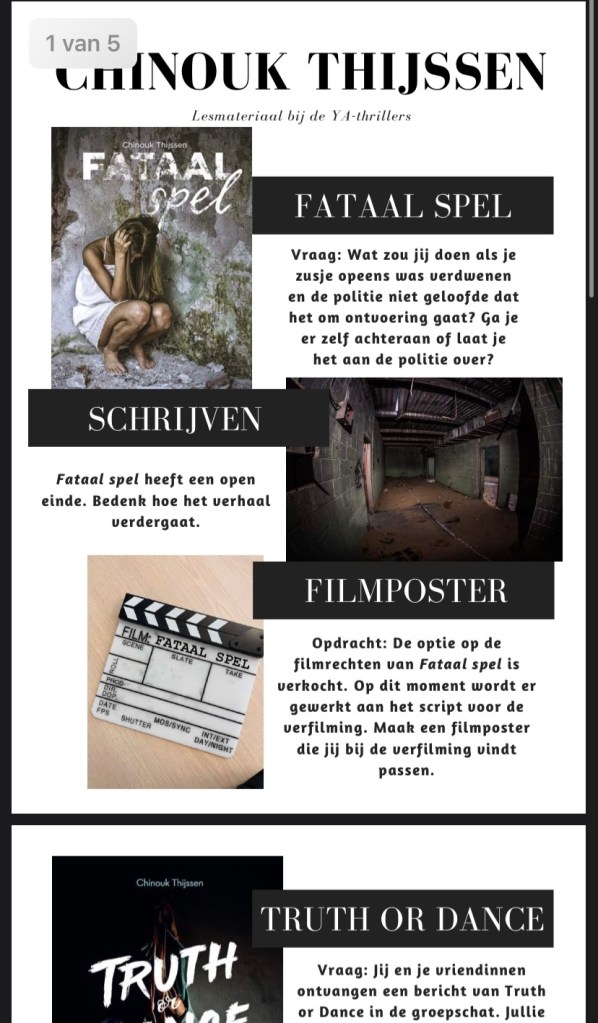 Op zoek naar lesmateriaal voor bij mijn YA-thrillers? Download het bestand via mijn account op https://www.deschrijverscentrale.nl/auteurs/1017485 of stuur mij een mail.