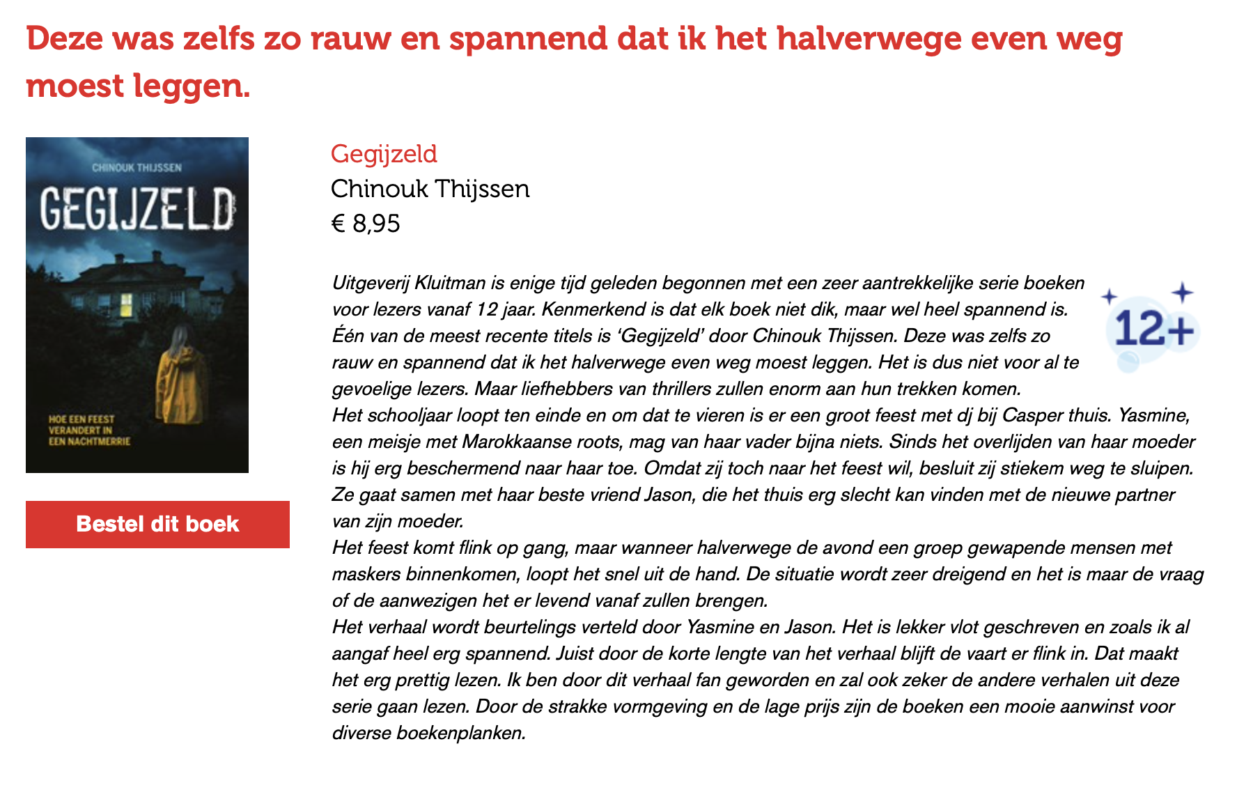 De kinderboekenspecialist van Libris.nl, Rubén Rodriguez da Silva, heeft Gegijzeld getipt als een van de kinderboekentips van de maand!