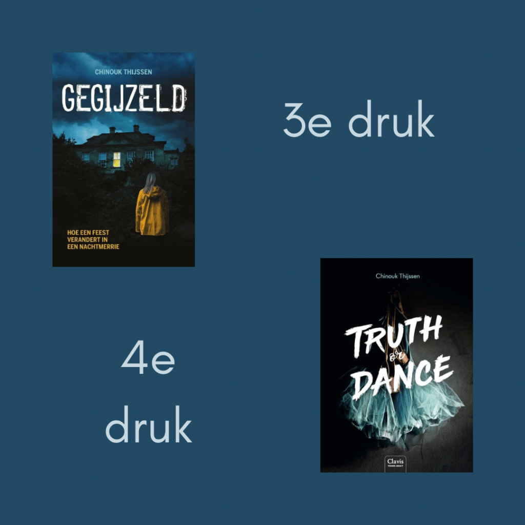Het is het jaar van de herdrukken, maar in het bijzonder deze week. Een paar dagen geleden hoorde ik dat er een derde druk komt van Gegijzeld en vandaag dat er een vierde druk komt van Truth or Dance! 😱🥳