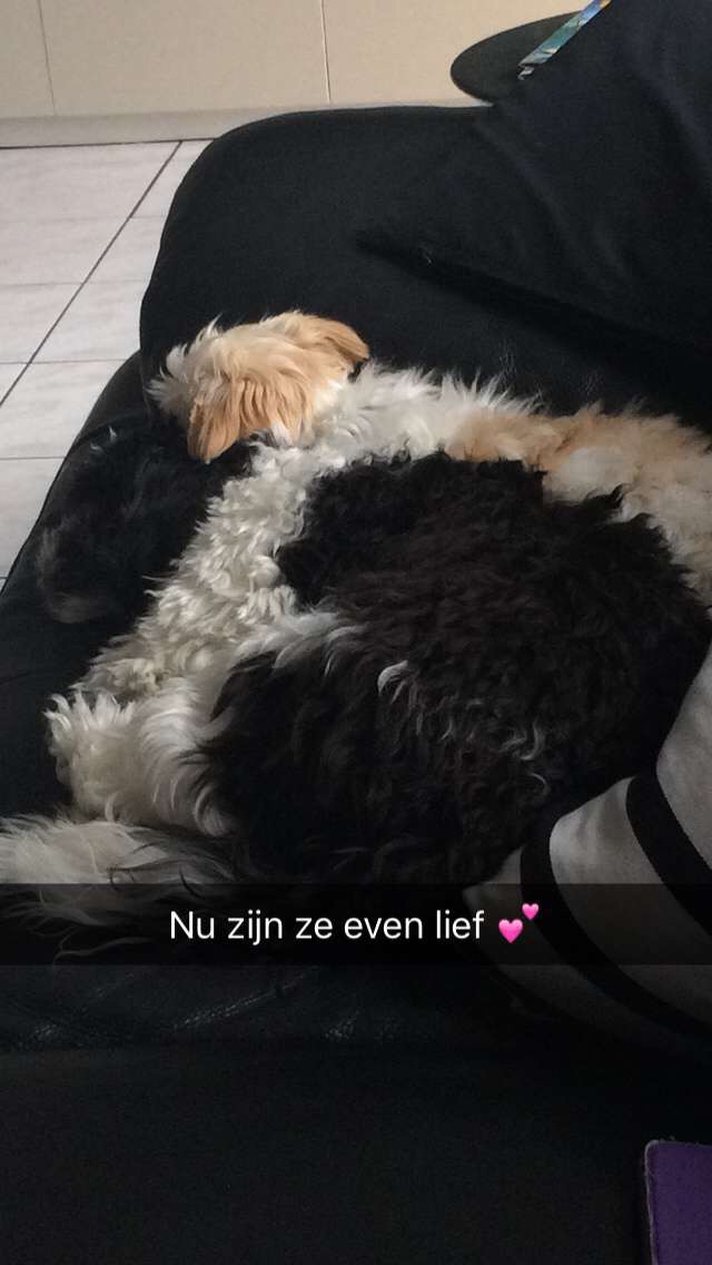 Daar heb je Blanche! 😍 Het nieuwe hondje van mijn zusje. Nu al de BFF van Cosmo. Op de foto’s was ze pas 11 weken.