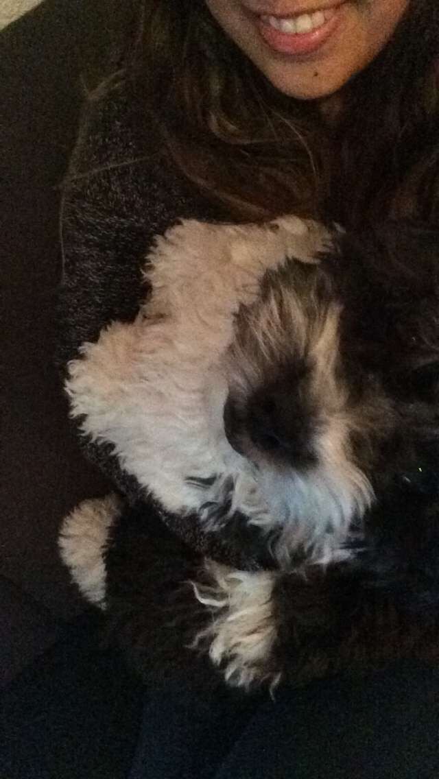 Cosmo ligt vaak dicht tegen mij aan. Behalve een echte selfiehond is hij ook een knuffelhond. Ik vind het gezellig, van mij mag hij altijd knuffelen. ❤