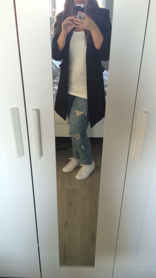 En dit was de outfit die ik had uitgekozen. Mijn moeder heeft echt een hekel aan die broek, maar ik vind de combi van netjes en stoer altijd heel leuk. Gelukkig was het zaterdag ook niet zo koud.